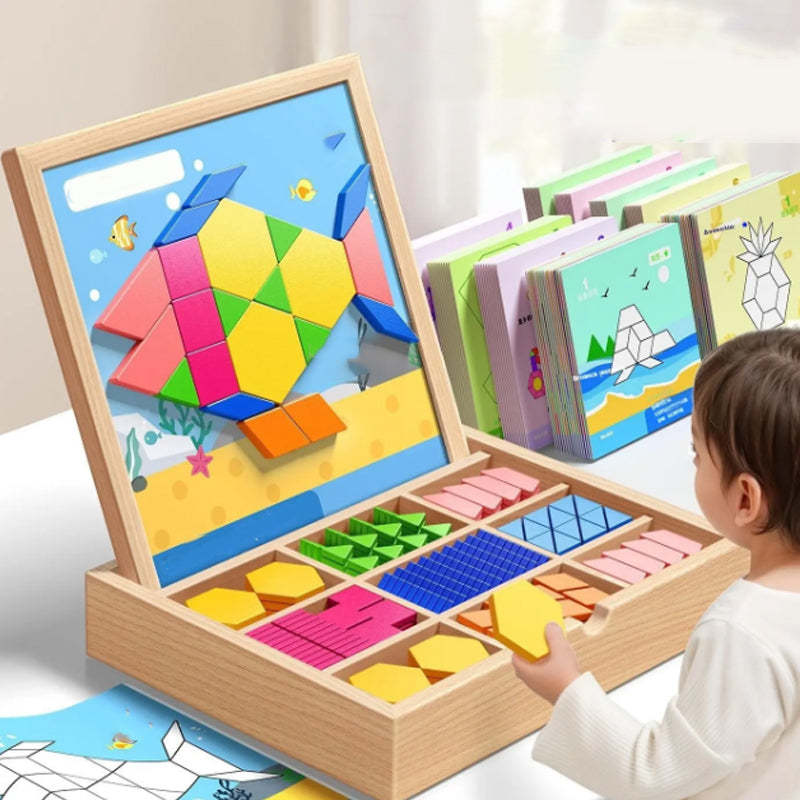 Package Includes: 1 * Wooden Magnetic Pattern Block Kit