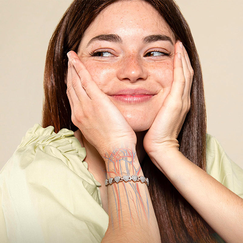 ELEGANCE & STYLE: The pure copper bracelets for women features heart-shaped links accented with multiple sparkling cubic zirconia stones, offering a refined, radiant look that enhances any outfit.