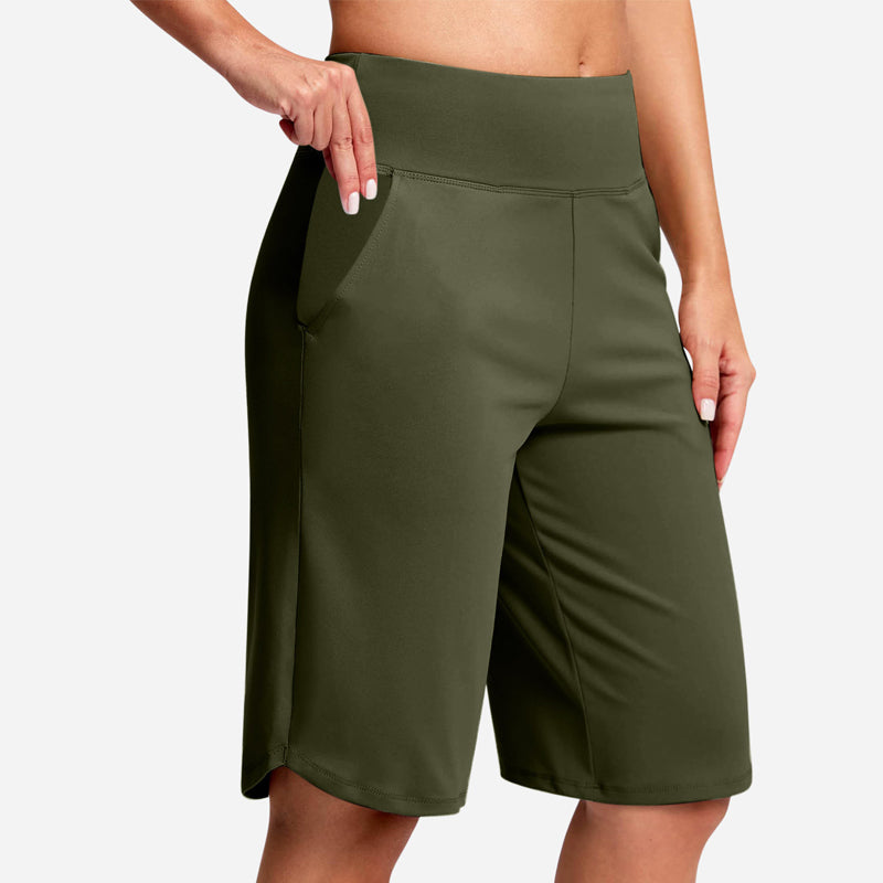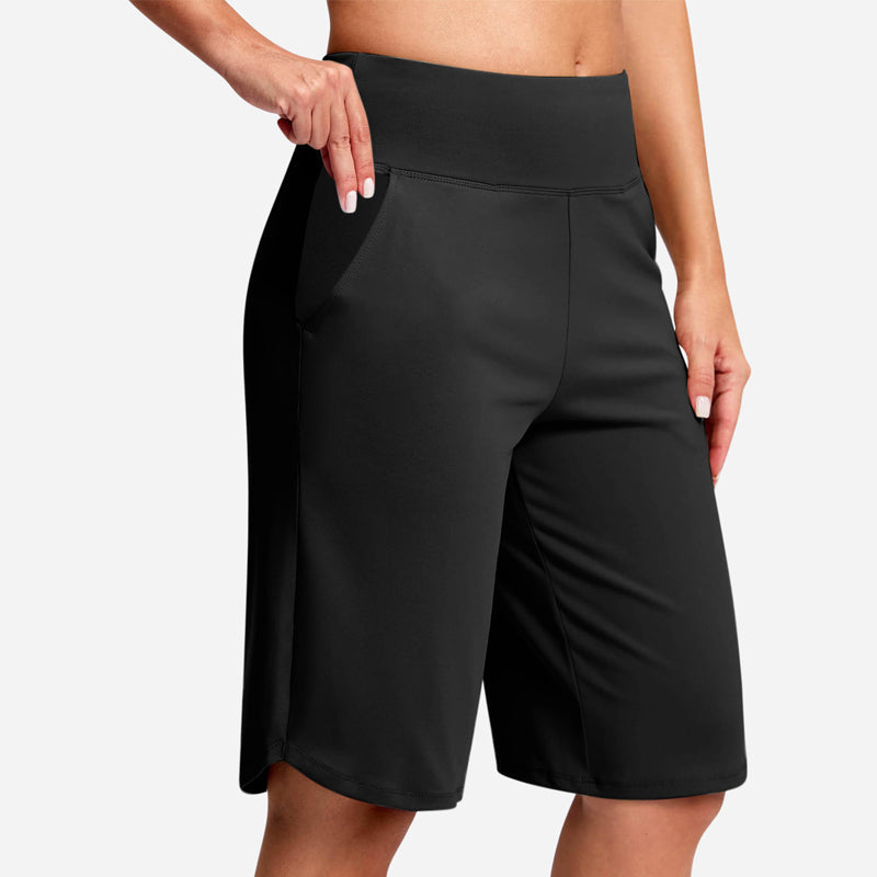 KNEE-LENGTH COVERAGE - The modest Bermuda short length provides ample coverage for comfort and confidence, making these shorts a versatile choice for various settings, from the gym to casual social gatherings.