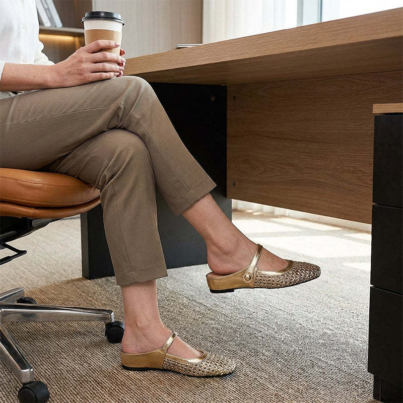 Package Includes: 1 * Women's Woven Square-Toe Mary Jane Mules