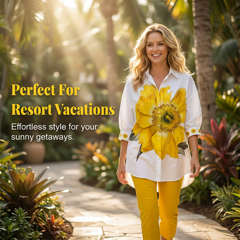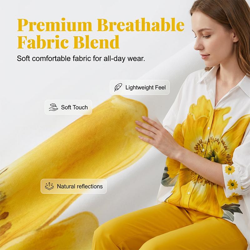 STRIKING BOTANICAL GRAPHIC PRINT - The centerpiece of this outfit is the striking botanical graphic print. Featuring high-definition, fade-resistant colors, the massive yellow flower adds a dramatic, artistic flair to your wardrobe.