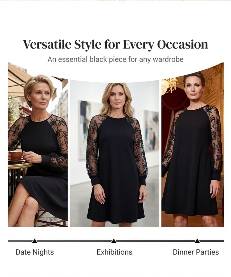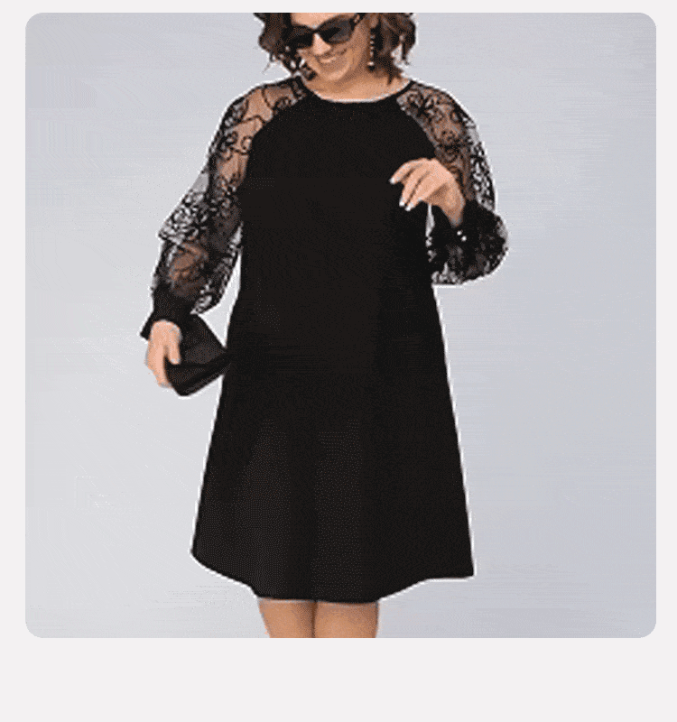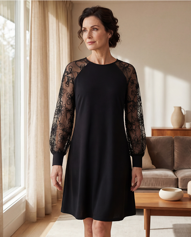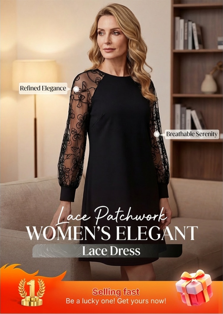 🔥Lace Patchwork Round Neck Long Sleeve Dress